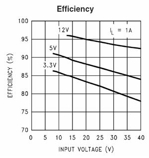 图 1:LM2675 降压直流/直流转换器芯片的效率